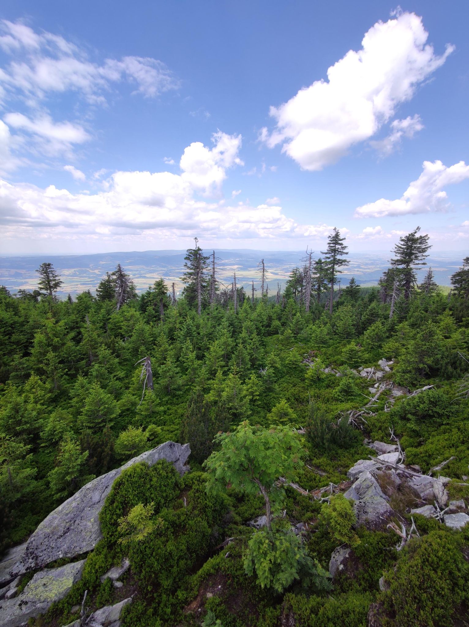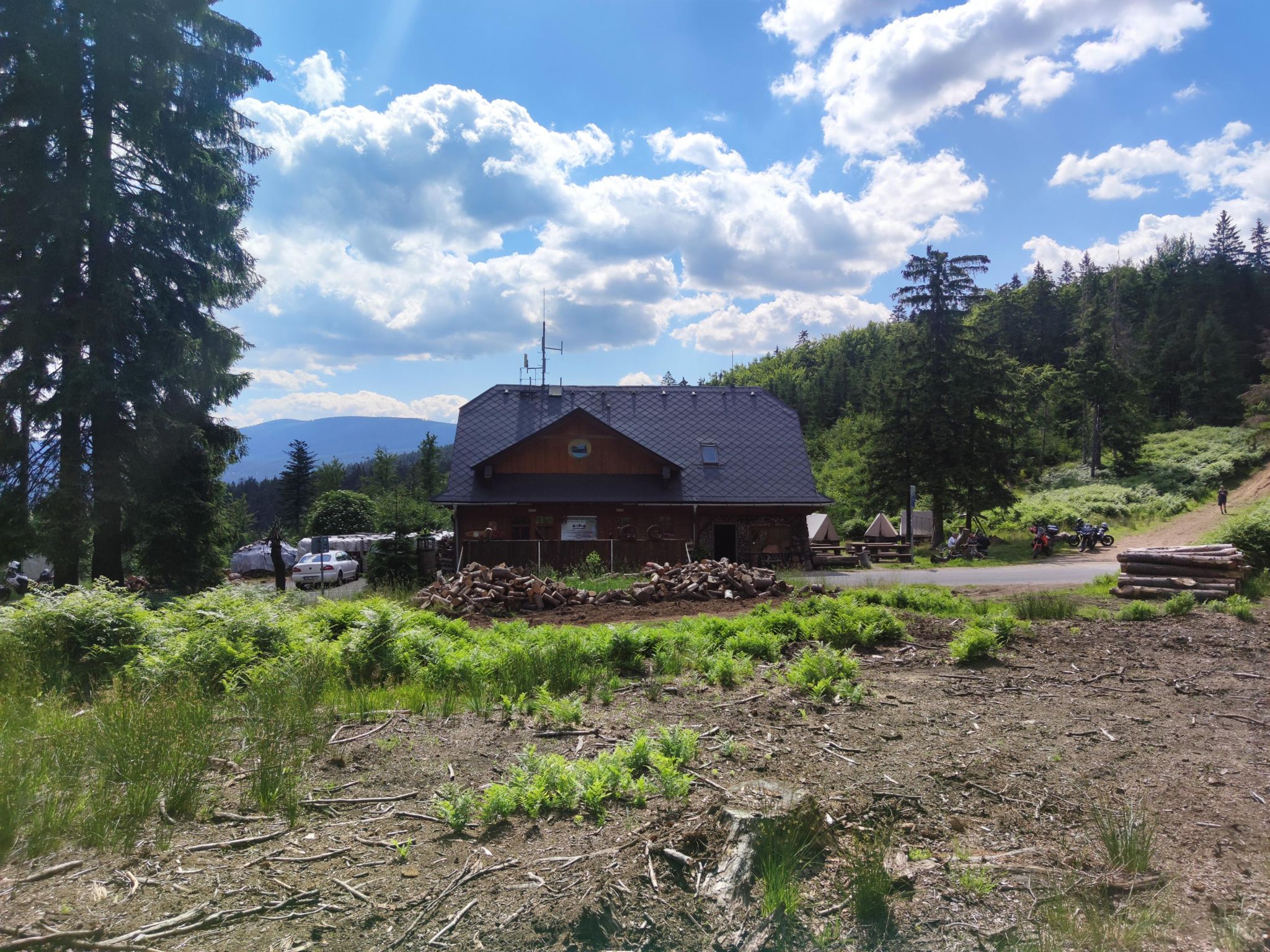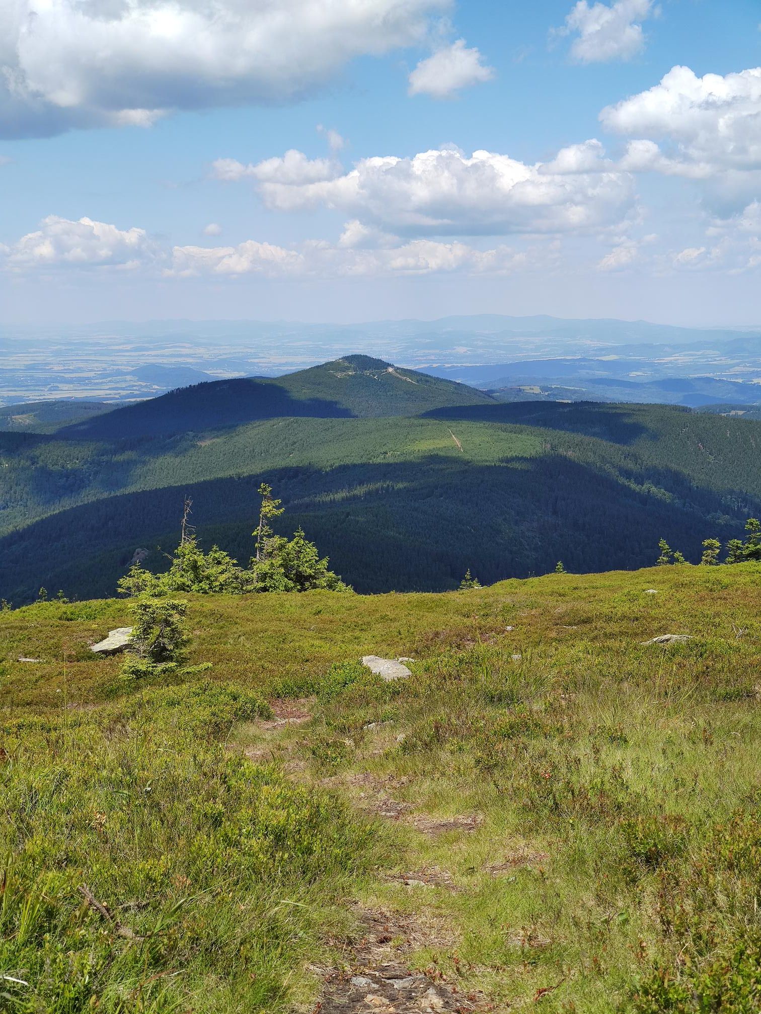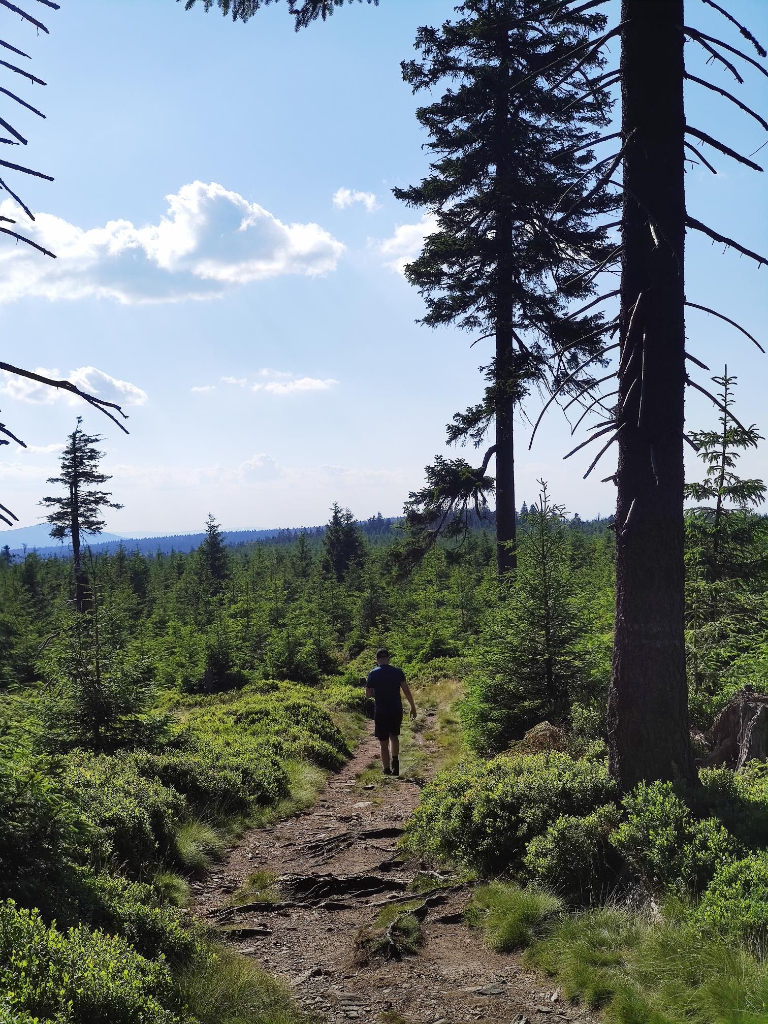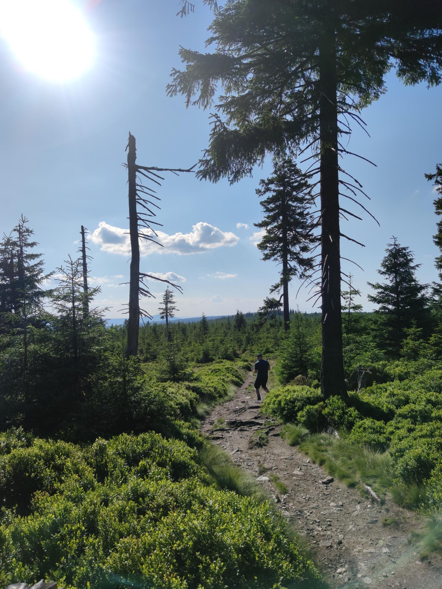 Dlouhý, nádherný den s velkou silou a energií, ale na extrémně bolavých nohách. Chtěl jsem dojít až na sedlo Vidly, ale každý krok byl obrovská bolest a do cíle zbývalo pořád minimálně 100 km, takže jsem to ukončil na ČHS 😀